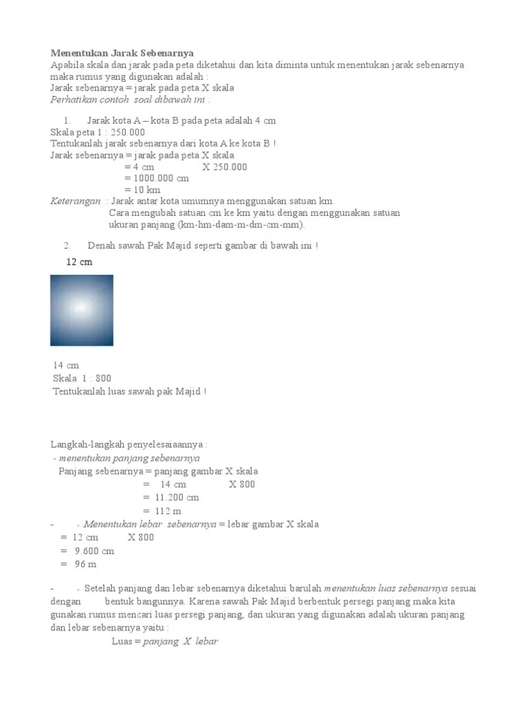 • lebar tanah sebenarnya = 2 cm x 1/500 = 1000 cm = 10 meter. Skala= jarak pada peta : Panjang lapangan sebenarnya skala x panjang pada peta 90 x 30 2700 cm 27 m lebar lapangan sebenarnya skala x lebar pada peta 90 x 25 2250 cm 225 m luas sebenarnya p x l 27 x 225 6075 m². Skala lebar sebenarnya 3 cm. 10 naik :100 naik :1.000 naik. 1/1000 = 10 x 1000 = 10.000 cm = 100 m. Berapa jarak sebenarnya bila skala tersebut 1 : Jarak pada peta = skala x jarak sebenarnya; Hitung jarak sebenarnya, lalu hitung luasan nya dengan menggunakan rumus luas untuk. Contoh soal panjang suatu rel kerata api adalah 800 meter. Selanjutnya sifat distributif dari perkalian. Jarak sebenarnya = 12 km. Anda mungkin pernah mendengar skala peta.